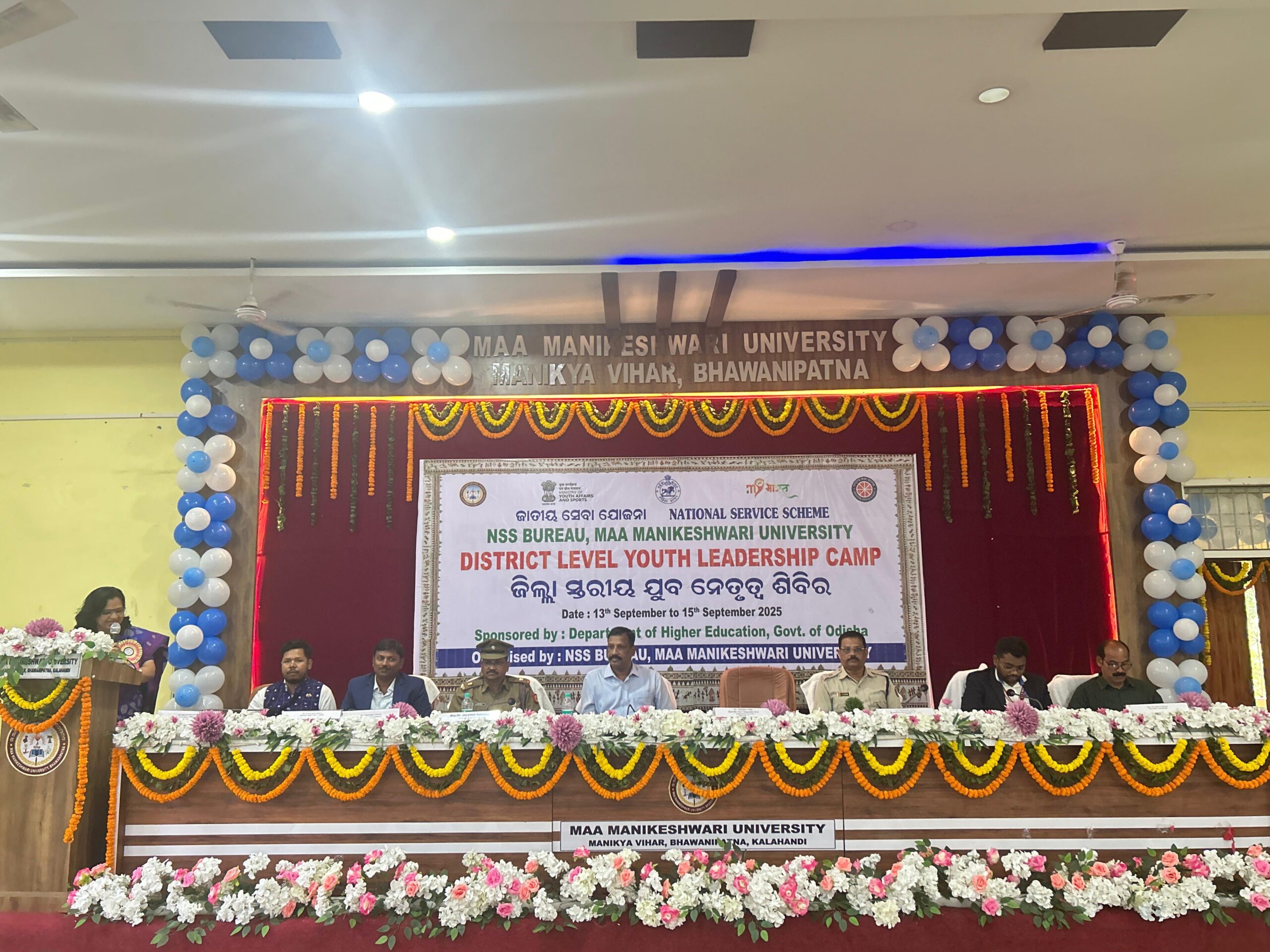 ମା ମାଣିକେଶ୍ୱରୀ ବିଶ୍ୱବିଦ୍ୟାଳୟର ଏନ୍ ଏସ୍ ଏସ୍ ବ୍ୟୁରୋ ଆନୁକୂଲ୍ୟରେ ଓଡିଶା ସରକାରଙ୍କ ଉଚ୍ଚଶିକ୍ଷା ବିଭାଗ ପ୍ରୟୋଜନାରେ ଏକ ତିନି ଦିନିଆ ସ୍ୱେଚ୍ଛାସେବୀ ନେତୃତ୍ୱ ବିକାଶ ତାଲିମ୍ କାର୍ଯ୍ୟକ୍ରମ ଡ. ଚିତ୍ତରଞ୍ଜନ ଖୁଣ୍ଟିଆଙ୍କ ତତ୍ତ୍ୱାବଧାନରେ ଆୟୋଜିତ ହୋଇଯାଇଛି । ଏହି କାର୍ଯ୍ୟକ୍ରମରେ ମା ମାଣିକେଶ୍ୱରୀ ବିଶ୍ୱବିଦ୍ୟାଳୟର ଭାରପ୍ରାପ୍ତ କୁଳପତି ଡ. ନିବେଦିତା ନାଥ ସଭାପତିତ୍ୱ କରି ସ୍ୱେଚ୍ଛାସେବୀ ମାନଙ୍କୁ ଯଥାସମ୍ଭବ ନିଜର ସାମର୍ଥ୍ୟ ଅନୁସାରେ ଅନ୍ୟକୁ ସହଯୋଗର ହାତ ବଢ଼େଇ ନିଜକୁ ବ୍ରତି କରିବା ପାଇଁ ଆହ୍ୱାନ ଦେଇଥିଲେ | ଏହି କାର୍ଯ୍ୟକ୍ରମରେ ଶ୍ରୀ ଶୁଭ୍ରାଂଶୁ ମିଶ୍ର, ଅତିରୀକ୍ତ ଜିଲ୍ଲା ଆରକ୍ଷୀ ଅଧୀକ୍ଷକ, କଳାହାଣ୍ଡି ମୁଖ୍ୟ ଅତିଥି ରୂପେ ଯୋଗଦାନ କରି ସ୍ୱେଚ୍ଛାସେବୀ ମାନଙ୍କୁ ଶୃଙ୍ଖଳିତ, ନିଷ୍ଠାବାନ ହେବା ସହିତ ସମାଜର ଜଣେ ଜଣେ ଆଦର୍ଶ ନାଗରିକ ହେବା ପାଇଁ ବକ୍ତବ୍ୟ ରଖିଥିଲେ | କର୍ଣ୍ଣେଲ ସୁନୀଲ କୁମାର, 13 ବାଟାଲିୟନ ଏନସିସି, ଓଡିଶା, ମେଜର ଡ. ଜୟଦେବ ସାହୁ, ଉପ କୁଳସଚିବ, ଶ୍ରୀ ପ୍ରିୟବ୍ରତ ବାଣୁଆ, ଜିଲ୍ଲା କାର୍ଯ୍ୟକ୍ରମ ଅଧିକାରୀ, କଳାହାଣ୍ଡି, ସମ୍ମାନୀତ ଅତିଥି ରୂପେ ଯୋଗଦେଇଥିଲେ । ଉକ୍ତ କାର୍ଯ୍ୟକ୍ରମରେ ଏନ୍ ଏସ୍ ଏସ୍ କାର୍ଯ୍ୟକ୍ରମ ଅଧିକାରୀ ଶ୍ରୀ ଜୟନ୍ତ ଦନସନା ସମାରୋହ ସଂଯୋଜନା କରିଥିବା ବେଳେ ଏନ୍ ଏସ୍ ଏସ୍ କାର୍ଯ୍ୟକ୍ରମ ଅଧିକାରୀ ଡ଼. ରାଧାରାଣୀ ନାୟକ ଅତିଥିଙ୍କ ପରିଚୟ ପ୍ରଦାନ, ମିସ ରୋଜ ମେରି ରୋସ୍ମିତା ଏକ୍କା ସମ୍ବର୍ଦ୍ଧନା ପର୍ବର ସଂଯୋଜନା କରିଥିବା ବେଳେ ଡ଼. ଚିତ୍ତରଞ୍ଜନ ଖୁଣ୍ଟିଆ, ସ୍ବାଗତ ଅଭିଭାଷଣ ପ୍ରଦାନ କରିଥିଲେ । ମୋଟ୍ 7 ଜଣ ଏନ୍ ଏସ୍ ଏସ୍ କାର୍ଯ୍ୟକ୍ରମ ଅଧିକାରୀମାନେ ସୁଶାନ୍ତ ସାହୁ, ଭୁପେନ ବେସ୍ରା, ସସ୍ମିତା ପ୍ରଧାନ, ଗଣପତି ବାଗ, ସନ୍ତୋଷ ପ୍ରଧାନ ଏବଂ କନକ ମଞ୍ଜରୀ ବେହେରା ପ୍ରମୁଖ ବିଭିନ୍ନ ମହାବିଦ୍ୟାଳୟରୁ ଯୋଗଦାନ କରିଥିଲେ । ଏହି ଶିବିରରେ ବିଶ୍ୱବିଦ୍ୟାଳୟ ଦ୍ୱାରା ଅନୁବନ୍ଧିତ କଳାହାଣ୍ଡି ଜିଲ୍ଲାରୁ 26ଟି ମହାବିଦ୍ୟାଳୟରୁ 110 ଜଣ ମୋଟ ସ୍ୱେଚ୍ଛାସେବୀ ଓ କାର୍ଯ୍ୟକ୍ରମ ଅଧିକାରୀଙ୍କୁ ନେଇ ତିନି ଦିନ ଧରି ଚାଲୁ ରହିବା ସହିତ 10 ଗୋଟି ବିଭିନ୍ନ ବିଷୟ ବସ୍ତୁକୁ ନେଇ 10 ଟି ଅଧିବେଶନ ସହିତ ପାଞ୍ଚ ଗୋଟି ବିଭାଗ ରେ ପ୍ରତିଯୋଗୀତା ଅନୁଷ୍ଠିତ ହେବ । ଶେଷରେ ଏନ୍ ଏସ୍ ଏସ୍ ଅଧିକାରୀ ଡ. ପ୍ରିୟ ରଞ୍ଜନ ବେହେରା ଧନ୍ୟବାଦ ଅର୍ପଣ କରିଥିଲେ ।