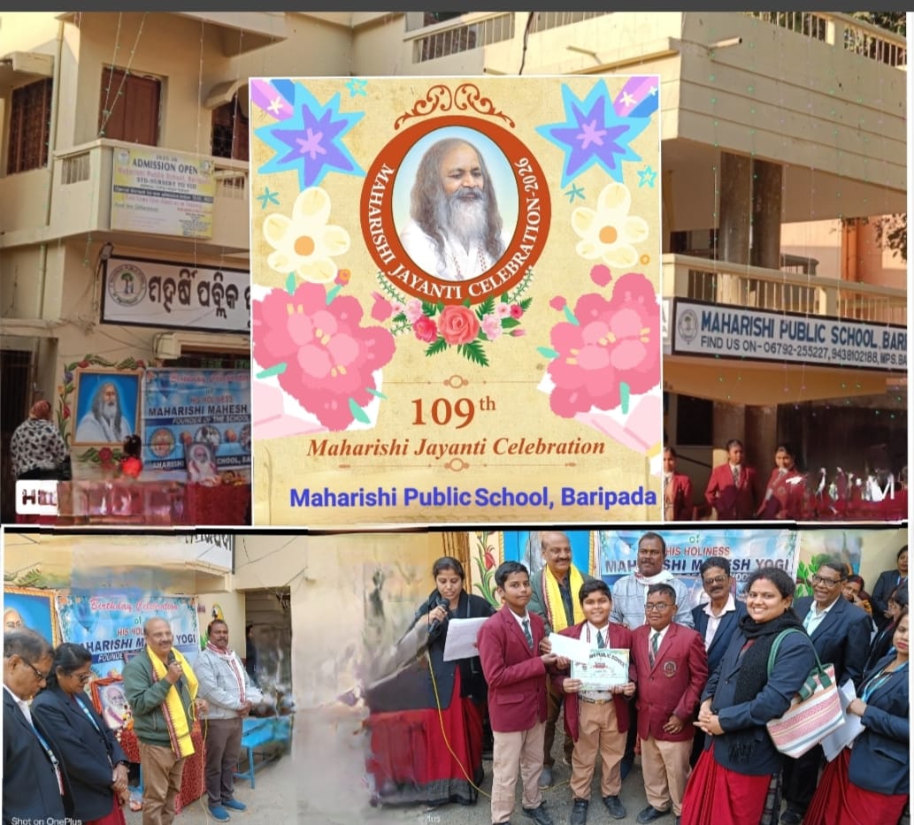 ମହାନ ଆଧ୍ୟାତ୍ମିକ ଗୁରୁ ମହର୍ଷି ମହେଶ ଯୋଗୀଙ୍କ ୧୦୯ତମ ଜନ୍ମଜୟନ୍ତୀ ରବିବାର ବାରିପଦାର ବାଘଡ଼ା ରୋଡ଼ ସ୍ଥିତ ମହର୍ଷି ପବ୍ଲିକ ସ୍କୁଲ ପ୍ରାଙ୍ଗଣରେ ଭକ୍ତି ଓ ଉତ୍ସାହର ସହ ପାଳନ କରାଯାଇଥିଲା।